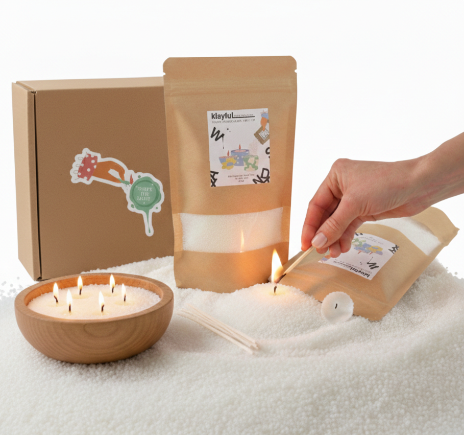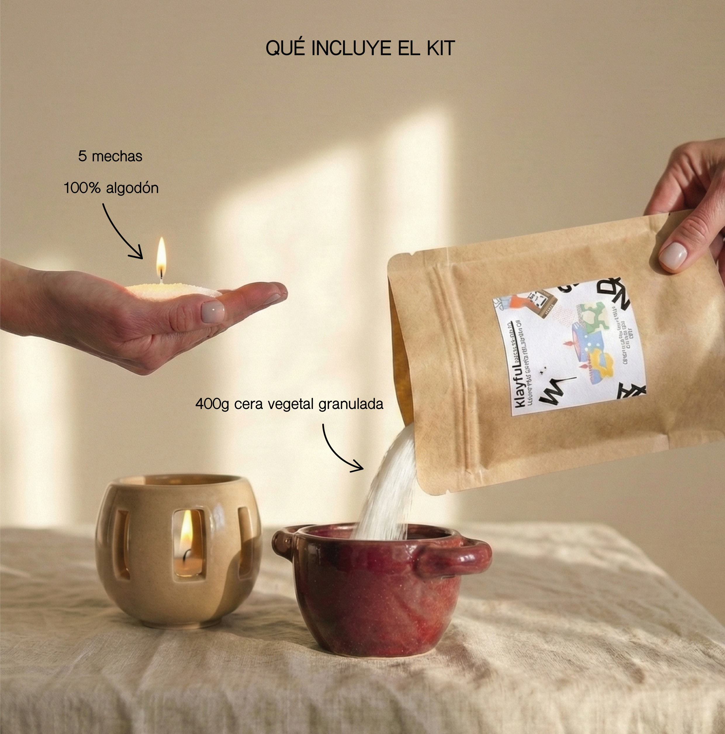Cada kit de velas Klayful es un ritual lento, una excusa para parar y transformar tus manos en luz. Cenas más acogedoras, noches más tranquilas, momentos con significado.