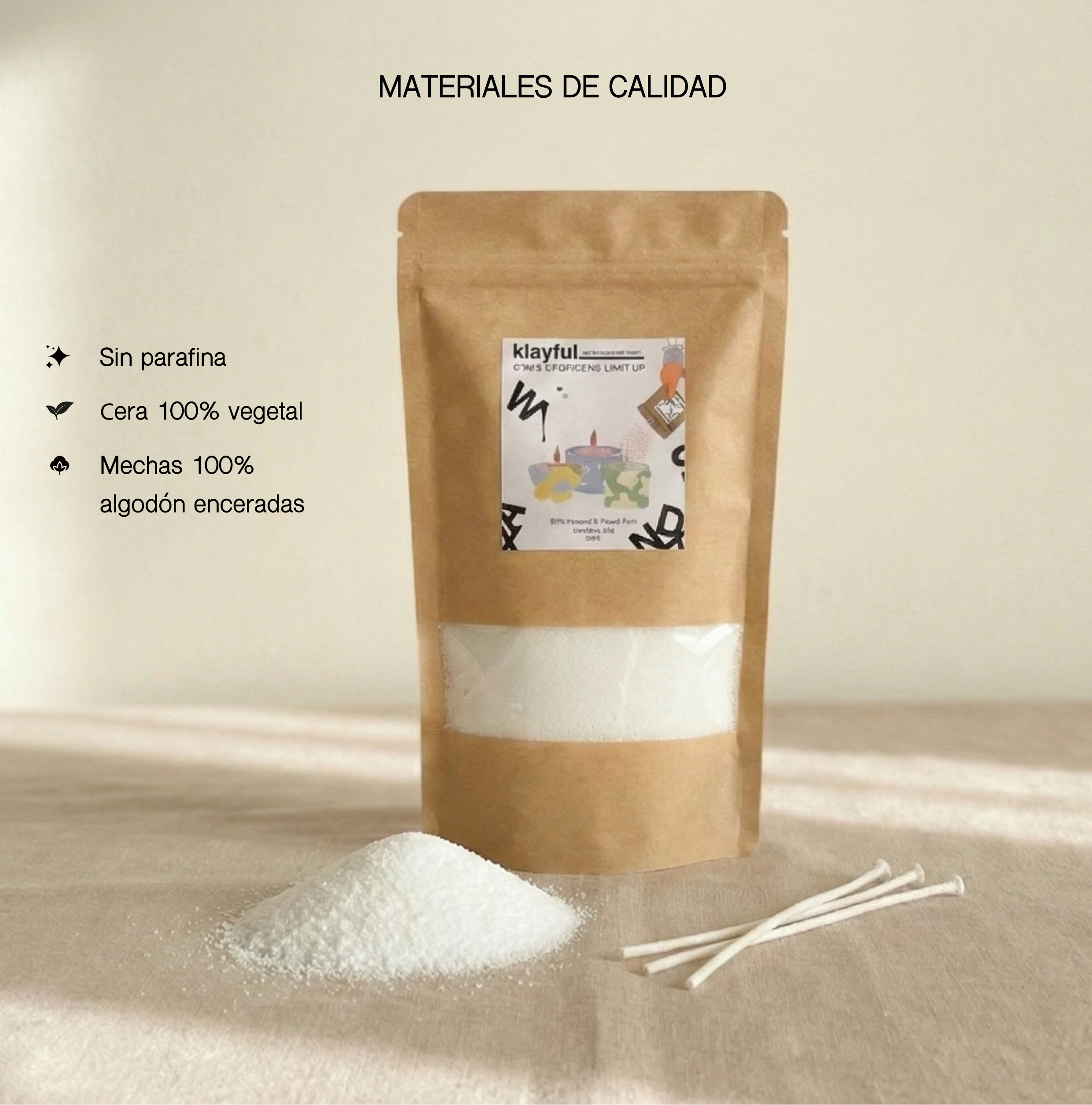 400 g de cera vegetal y mechas de algodón, limpia, segura y lista para usar.