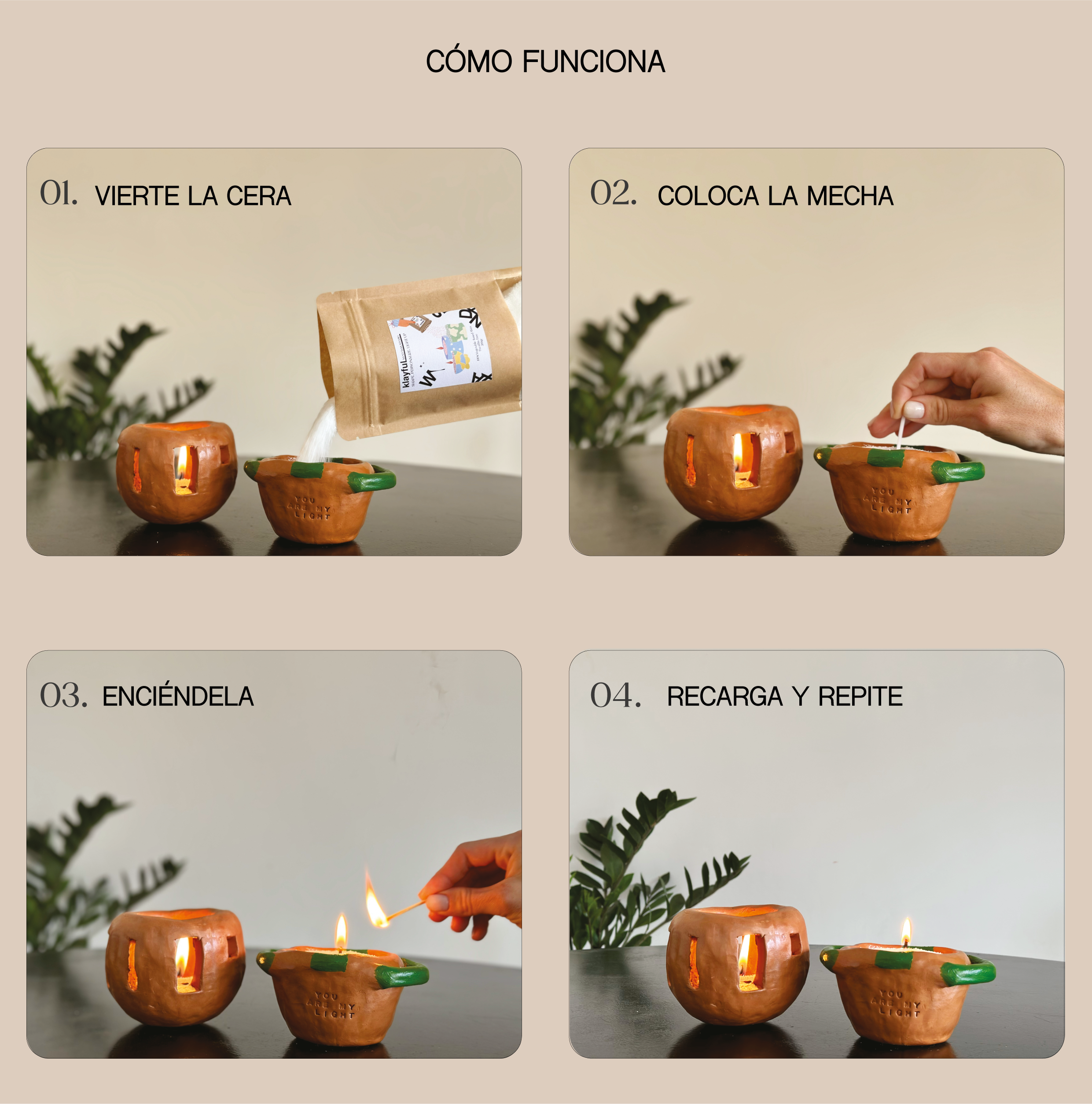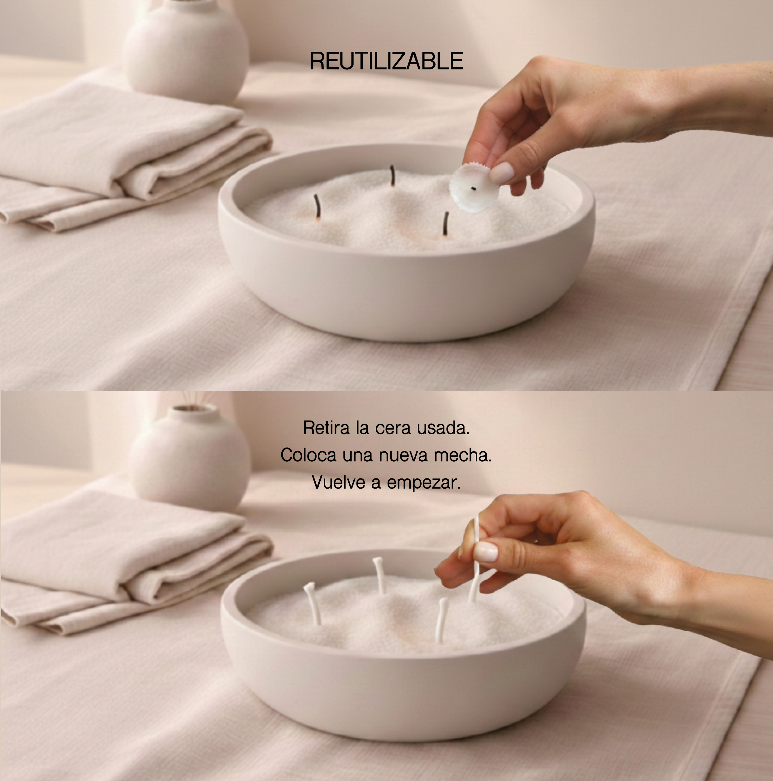 Para nada. Siguiendo los pasos es sencillo: moldeas el bowl, viertes la cera, colocas la mecha y listo. Lo hemos diseñado para que cualquiera pueda hacerlo sin experiencia previa.