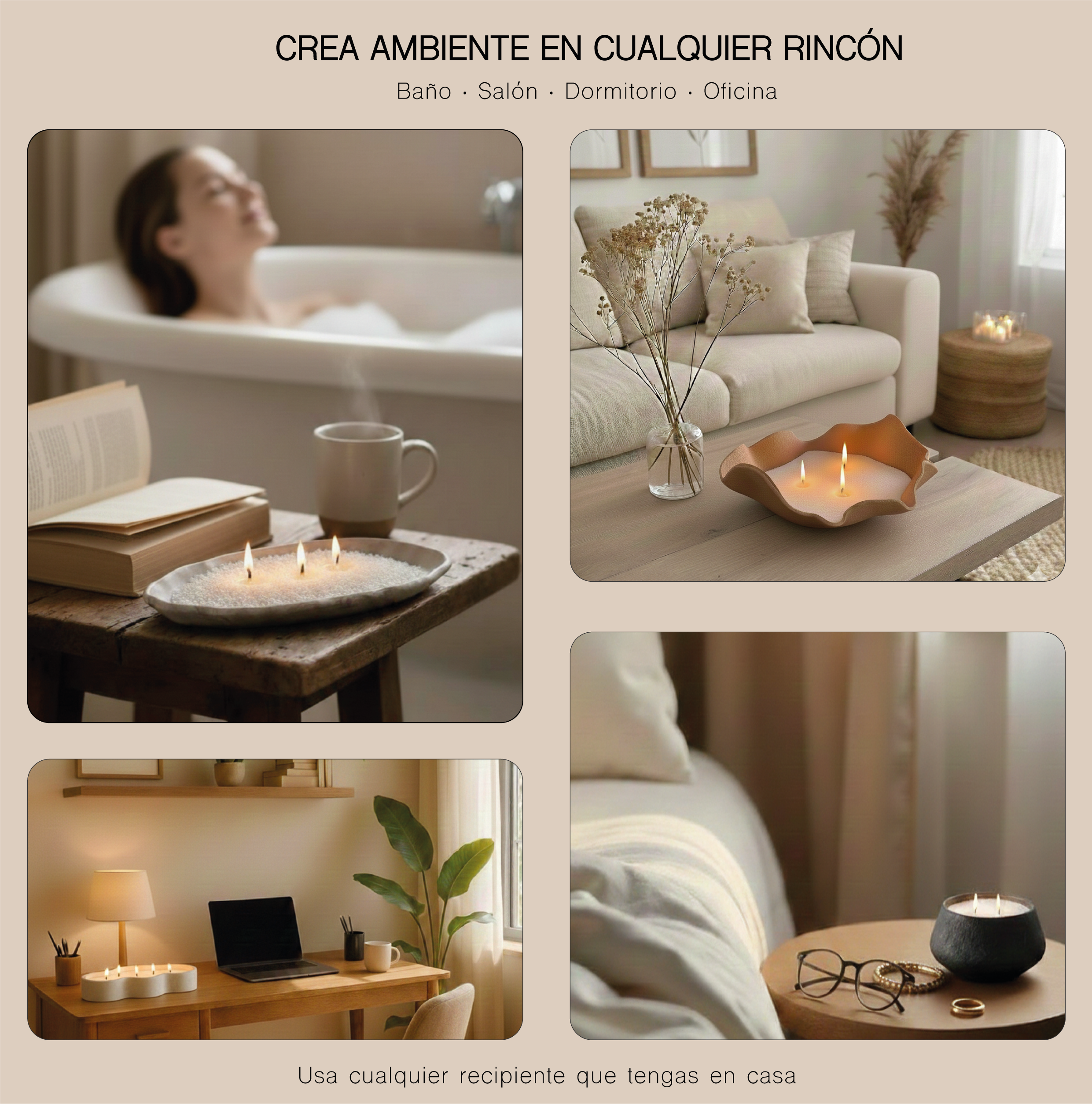 - Ambiente único: velas naturales, sin aromas añadidos, perfectas para momentos de paz, cenas íntimas o noches acogedoras.