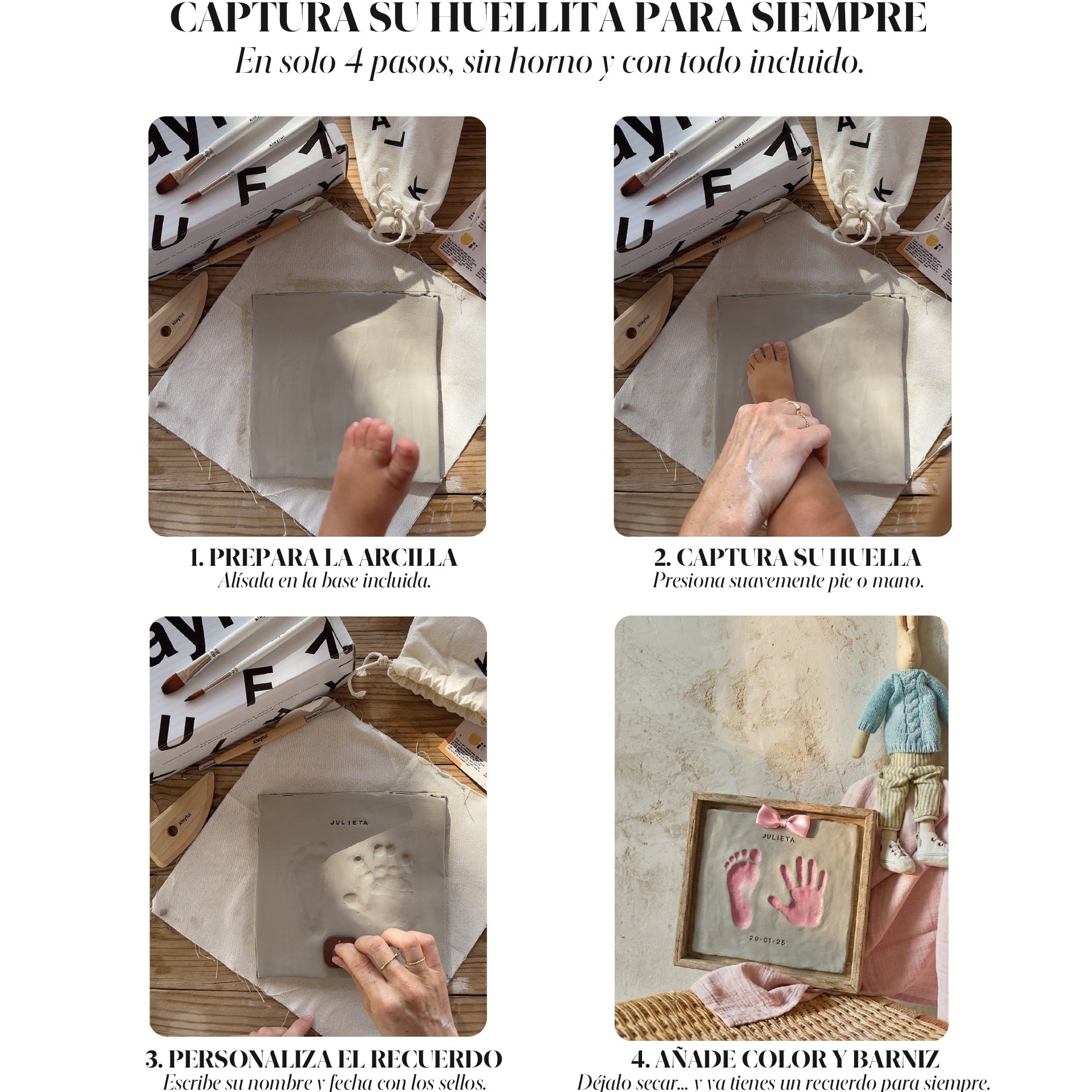 Está pensado para personas como tú, que buscan algo exclusivo y lleno de significado. Por eso, diseñamos cada kit en España con arcilla natural premium, para que vivas la experiencia de un taller de cerámica en tu propio salón.