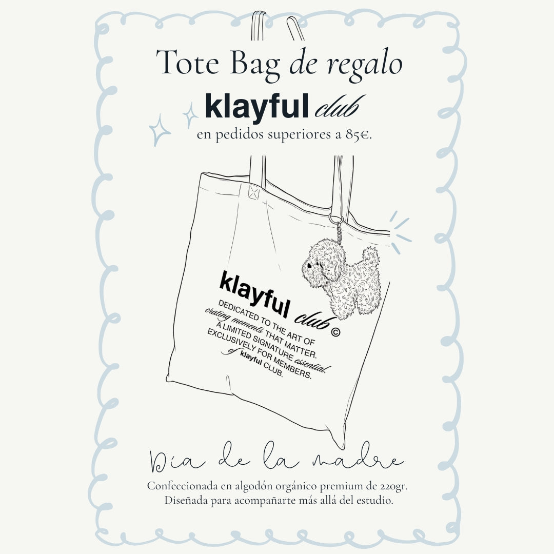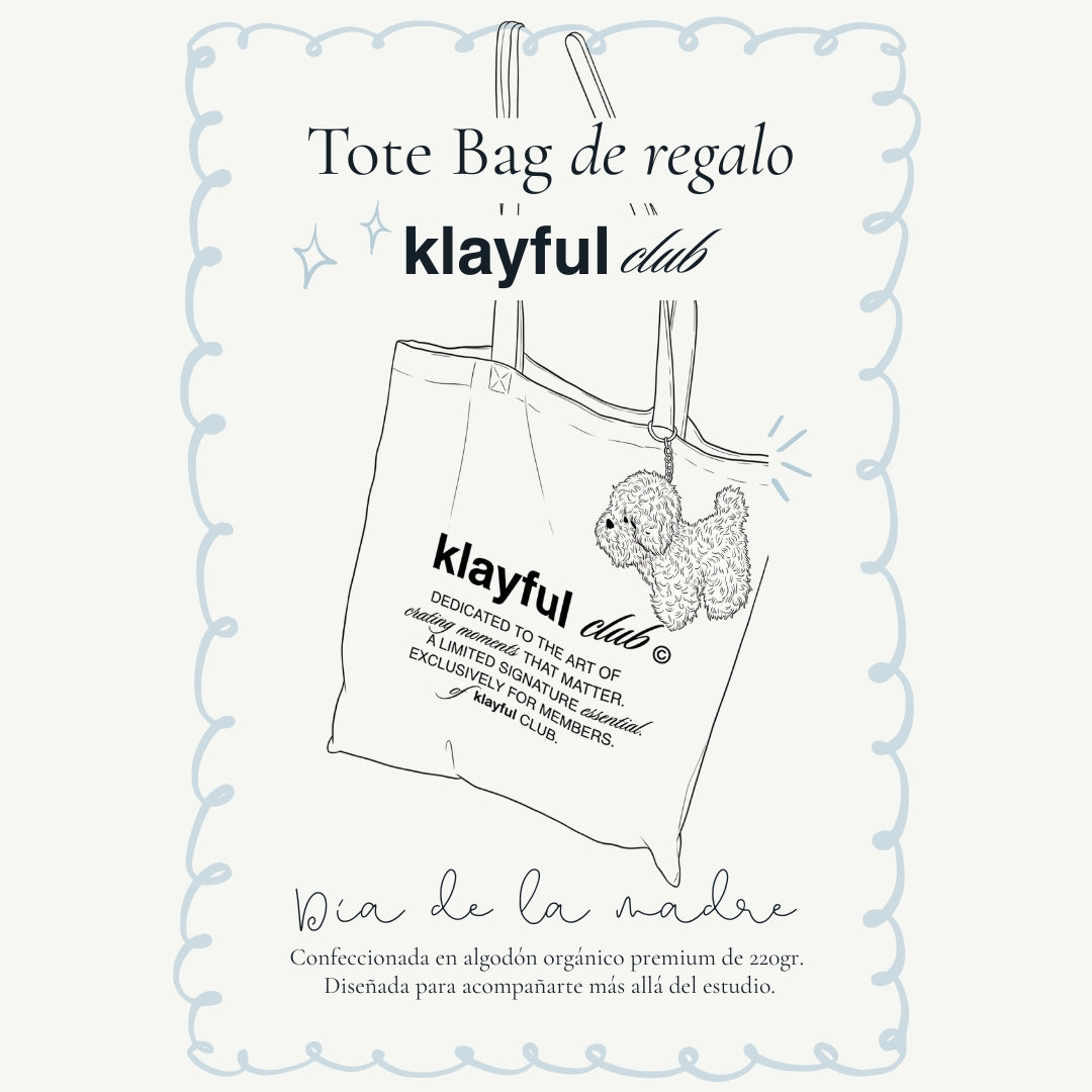 🎁 Tote Bag Exclusiva klayful Club de regalo. Confeccionada en algodón orgánico de 220gr para una resistencia absoluta. Un diseño exclusivo y limitado creado solo para los miembros de nuestro club.